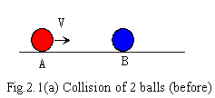 I express that ball 'A' has Energy of Motion be in proportion to 'MV'. Before collision, there has zero energy with ball 'B', we don't consider like rest energy, and disregard small loss energy like heat and influence of its rotation in this chapter. After collision, ball 'A' becomes to be at rest, and ball 'B' is moving at velocity of 'V'.