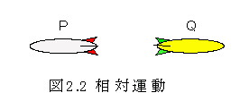 相対的な位置関係を示すだけの相対速度や相対加速度ではP,Qの状態について何らかの違いがあると主張することはできないはずです。相対速度はその座標のとり方によってどのようにも変化するものであり、その座標のとり方は任意ですから、相対速度の大きさと運動物体の状態は、直接関係ないものであるからです。